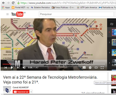 Veja no YouTube o CANAL AEAMESP, com vídeos sobre o setor metroferroviário. Trata-se de parceria com o CANAL MOVA-SE