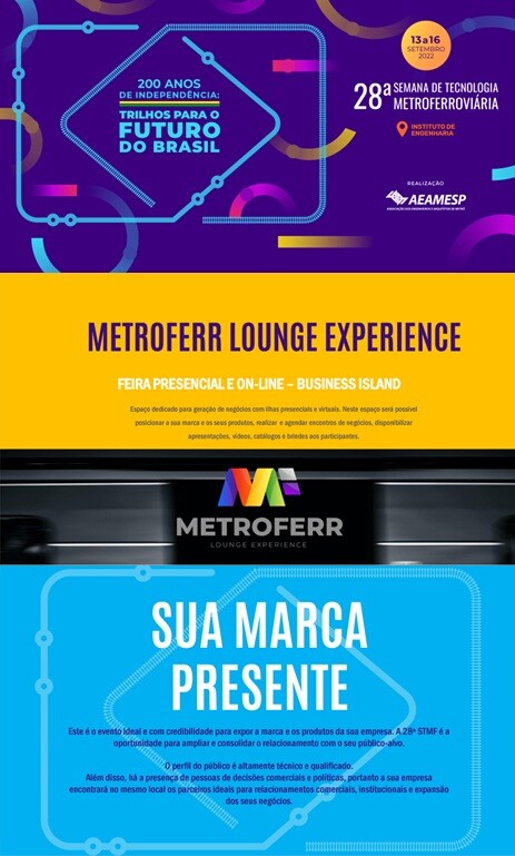 Tema da 28ª Semana de Tecnologia Metroferroviária será ‘200 anos de independência: trilhos para o futuro do Brasil’.