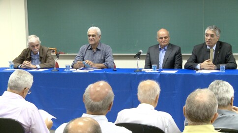 Dirigentes e associados da AEAMESP, entre eles o presidente, engenheiro…